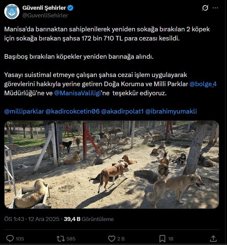 Başıboş sokak köpeklerinden rahatsız olan vatandaşlar ise sosyal medyadan yasayı suistimal etmeye çalışan şahsa cezai işlem uygulayarak görevlerini hakkıyla yerine getiren Doğa Koruma ve Milli Parklar Müdürlüğü'ne ve Manisa Valiliği’ne teşekkür eden paylaşımlarda bulundular. Vatandaşlar, yasa ve yönetmelikte belirtilen cezai işlemlerin gerektiği şekilde uygulanması halinde sokak köpeklerini suistimal ederek halk sağlığını tehlikeye atanlara karşı caydırıcı etki oluşturacağını vurguladılar.
