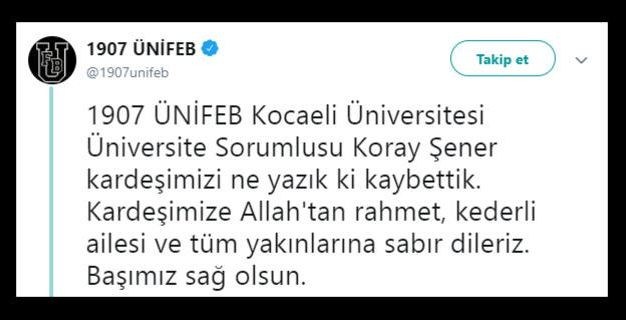 1998 Doğumlu Koray Şener koyu bir Fenerbahçe taraftarıdır. Kocaeli Ünivsersitesi'nde Uluslararası ilişkiler okuyan Koray Şener, İzmit'te ikamet ediyordu. Galatasaray-Fenerbahçe maçının birinci yarısında aniden rahatsızlandı.
