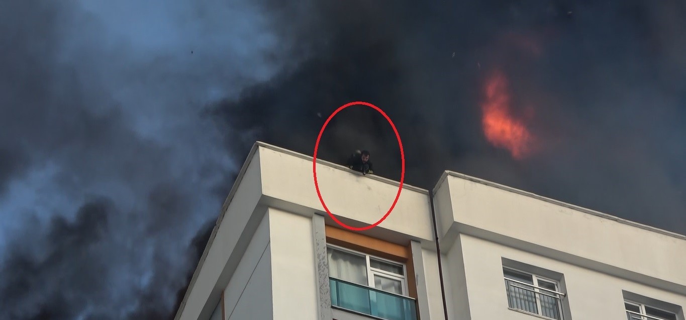 Korku dolu anlar kaydedildi! Alevlerin içinde kalan itfaiyeci 11. kattan yere çakıldı
