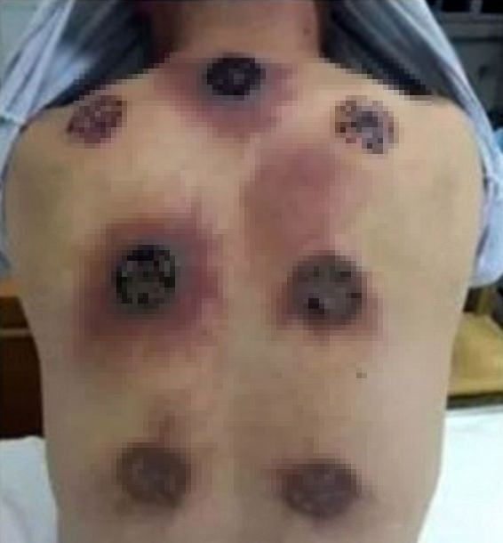 Çin'de sırtına bardak çektiren bir adamın sırtında yanıklar oluştu. 1 ay boyunca her gün bardak çektiren adamın sırtında delikler meydana geldi.