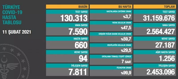 Sağlık Bakanlığı tarafından 11 Şubat koronavirüs tablosu, vaka, hasta, test, vefat sayısı ve son durum açıklandı.