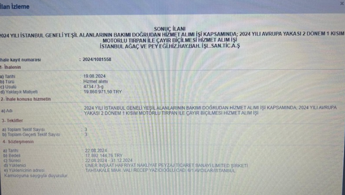CHP’li İBB yönetimi açıklamasında, Akit’in ilk olarak13 Mart’ta “Ağaç A.Ş.’yi fena çapalamışlar” manşetiyle ifşa ettiği ve Ağaç A.Ş.’den sistematik şekilde “çapalama” ihalesi alan Su Botanik A.Ş. ile Üner İnşaat Ltd. Şti şirketlerinin ihale dökümanlarındaki adres aynı olduğu halde somut gerçeği yalanlamaya çalıştı. İhale platformu e-KAP’taki belgelerde,