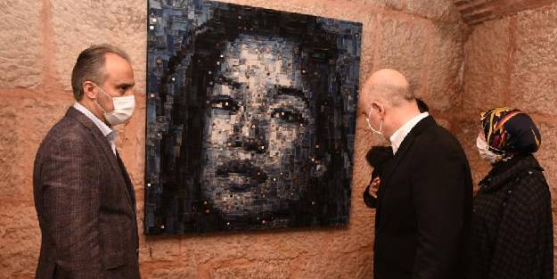 Büyükşehir Belediye Başkanı Alinur Aktaş ile birlikte Zindankapı Güncel Sanat Galerisi'nde gelen Bakan Karaismailoğlu, eserleri tek tek inceleyip sanatçı Deniz Sağdıç'tan eserler hakkında bilgi aldı