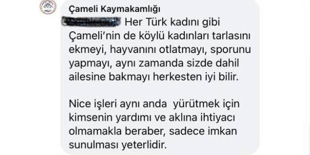 Köylü kadınları küçümseyen zihniyete tokat gibi bir cevap verilen yanıtta; “Her Türk kadını gibi, Çameli’nin de köylü kadınları tarlasını ekmeyi, hayvanını otlatmayı, sporunu yapmayı, aynı zamanda sizde dahil ailesine bakmayı herkesten iyi bilir. Nice işleri aynı anda yürütmek için kimsenin yardımı ve aklına ihtiyacı olmamakla beraber, sadece imkan sunulması yeterlidir” ifadelerine yer verildi.