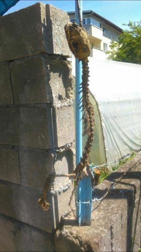 Çaycuma ilçesi Geriş köyünde yaklaşık bir hafta önce bahçede dolaştığı sırada kedilerin bir şeyle uğraştığını fark eden aile gördüğü karşında şoka uğradı.