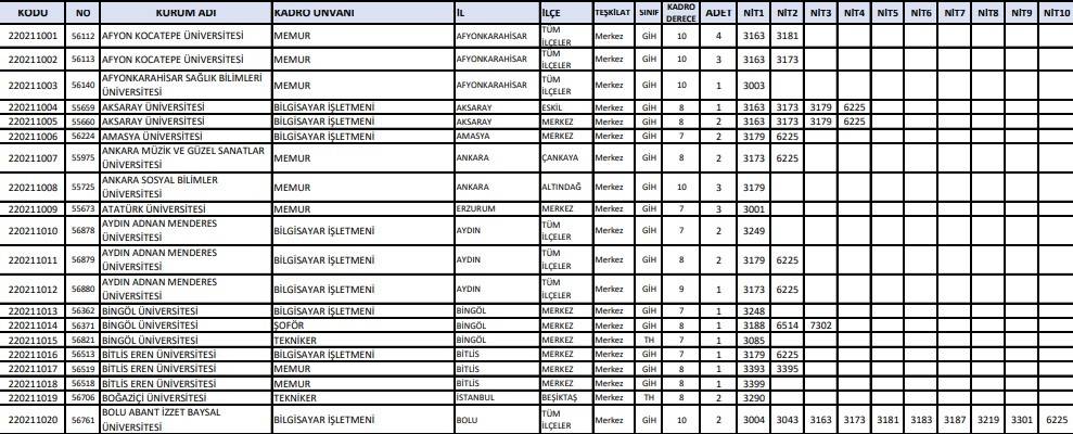 Lisans Mezunlarının Tercihleri Arasında Gösterebileceği Kadro ve Pozisyonlar