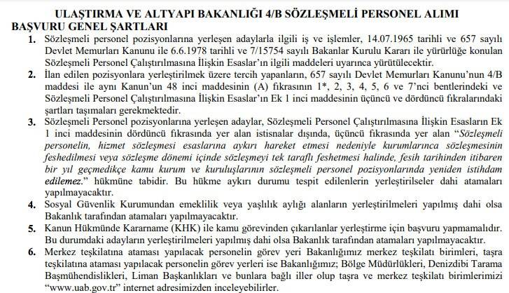 Ulaştırma ve Altyapı Bakanlığı KPSS 2022/3 tercihleriyle birlite sözleşmeli personel alımı yapacak. KPSS tercih kılavuzu yayımlandı. Ulaştırma ve Altyapı Bakanlığının sözleşmeli pozisyonlarına, 657 sayılı Devlet Memurları Kanununun 4/B maddesi kapsamında istihdam edilmek üzere yerleştirme yapılacak. Adaylar tercihlerini, 24 Şubat-2 Mart 2022 tarihleri arasında internet yoluyla ÖSYM’ye gönderebilecekler.