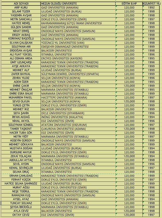 Mezun olduktan 11 yıl sonra sınava giren ve 120 puan alan 14 kişi şunlar:
