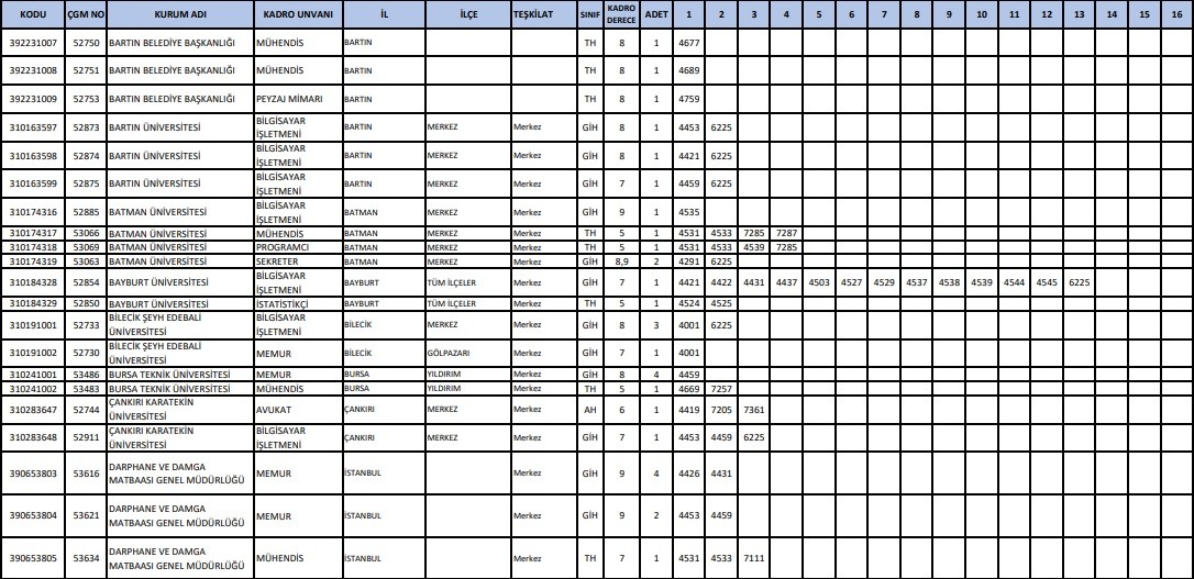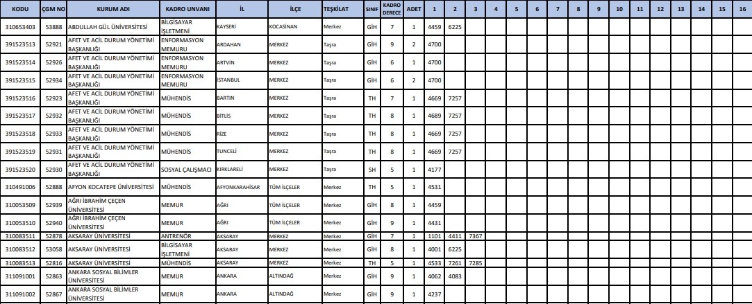 Lisans Mezunlarının Tercihleri Arasında Gösterebileceği Kadro ve Pozisyonlar şöyle: