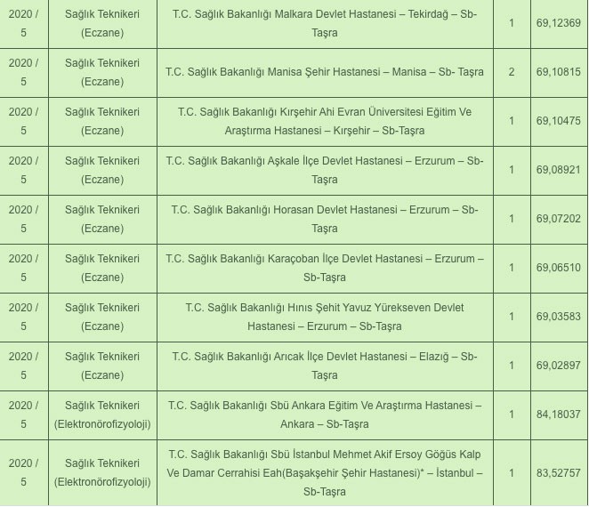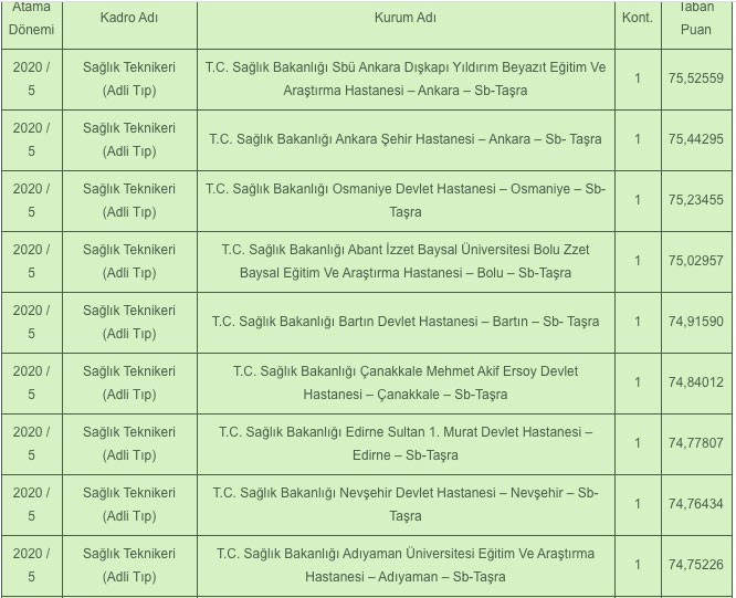 Atama dönemi 2020 / 1:  kadro: Sağlık Teknikeri Kurum adı: Ordu Üniversitesi – Ordu Kontenjan: 1 Taban puanı:92,26846