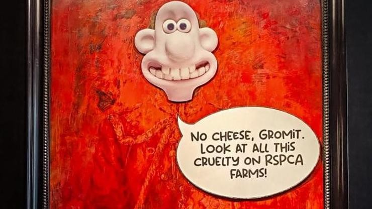 Aktivistler, eserin üzerine bir de “Gromit, Kraliyet Hayvanlara Karşı Zulmü Önleme Derneği çiftliklerinde hayvanlara yapılan zulme bak” yazılı konuşma balonu yaptı. Gruptan yapılan açıklamada, hayvanlara karşı yapılan zulme dikkat çekmek için portreyi “yeniden düzenledikleri” ifade edildi.