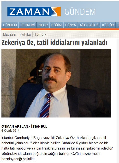 Savcı Zekeriye Öz'ün Dubai tatili Türkiye'deki medya gündemini kasıp kavururken Gülen ve Doğan medyası yaşanan gelişmeleri okuyucularından saklamak için her türlü yolu denedi.
