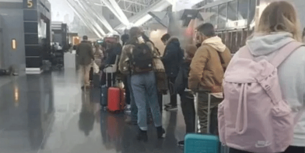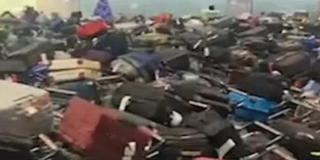 Paylaşılan görüntülerde uzun kuyruklar, havalimanlarının koltuklarında ve yerlerinde uyuyan yolcular ve bavul yığınları görülüyor.