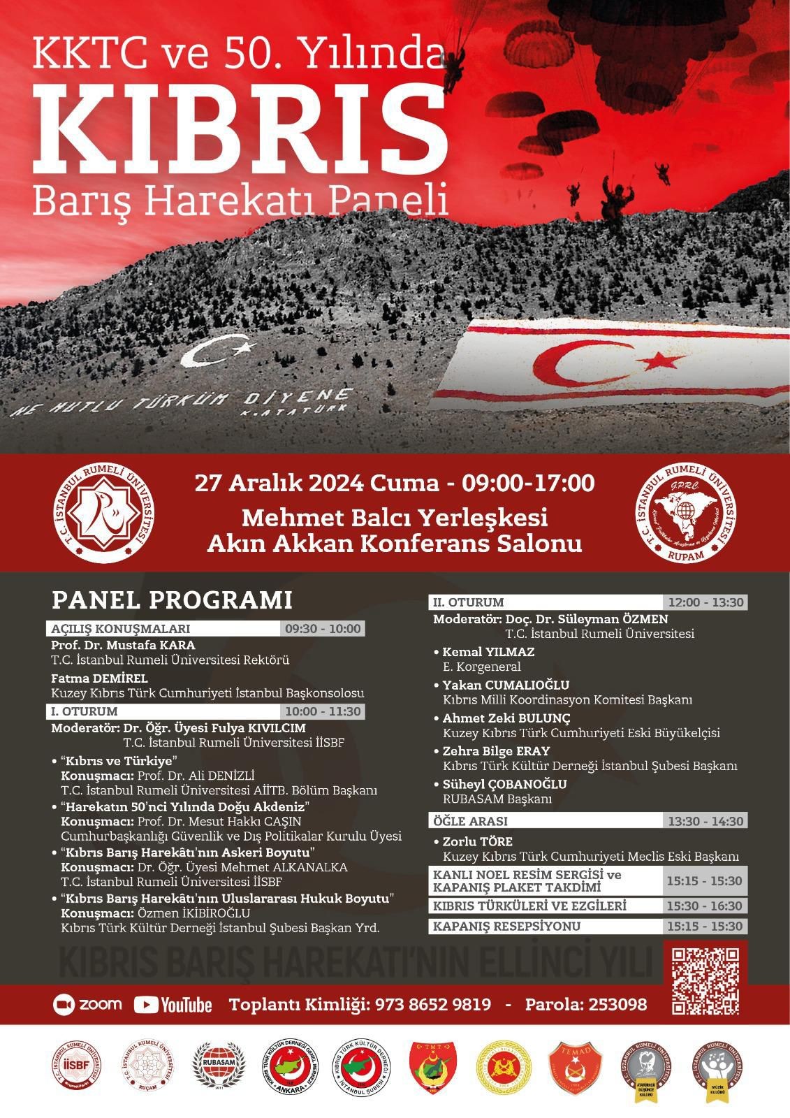 İstanbul Rumeli Üniversitesi, Küresel Politikalar Uygulama ve Araştırma Merkezi tarafından “KKTC ve 50. Yılında Kıbrıs Barış Harekâtı Paneli” gerçekleştirilecek. Söz konusu panele birbirinden deneyimli ve alanında uzman öğretim üyelerinin yanı sıra KKTC Cumhuriyet Meclisi Eski Başkanı Zorlu Töre’de konuşmacı olarak katılım sağlayacak.