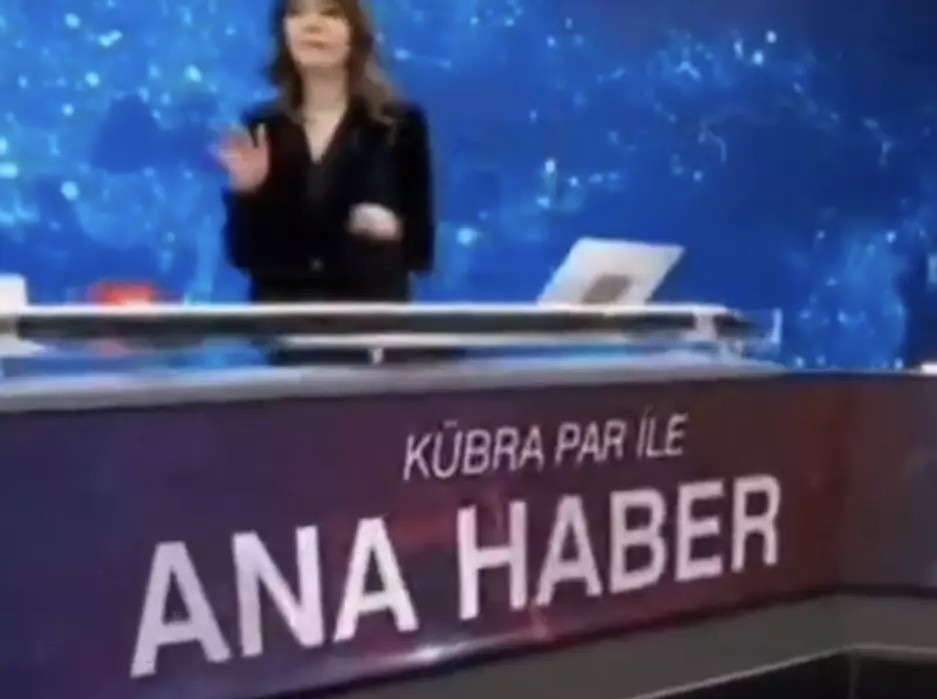 TV100 ekranlarında ana haber bültenlerini sunan Kübra Par, yayın sonunda el hareketi çekti.