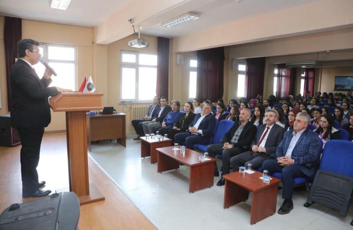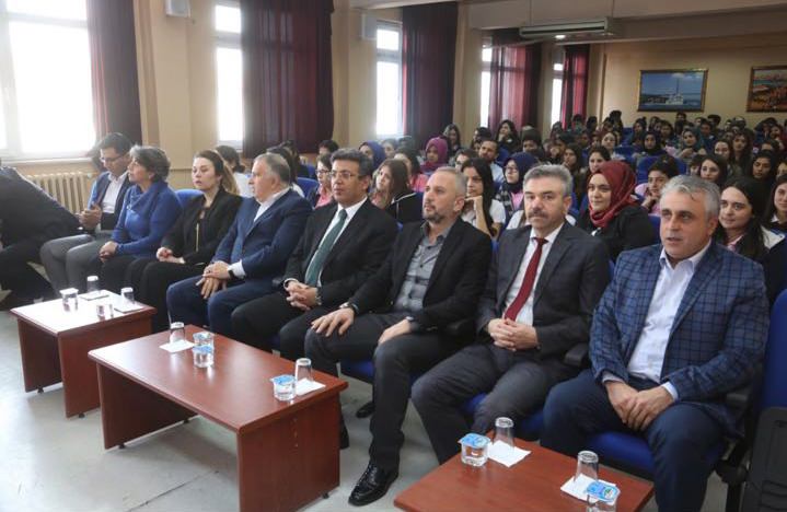 Okul Müdürü Mehmet Kıraç ve İdareciler Eğmen Demirhan, Aykut Uçak, Halide Duman ve İbrahim Aslan yönetiminde gerçekleşen söyleşide öğrenciler Belediye Başkanı Temel Karadeniz'e sorularını yönelttiler.