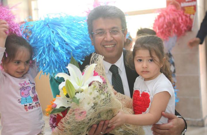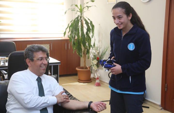 Öğrenciler Küçükçekmece Belediye Başkanı Temel Karadeniz'in tansiyonunu ve nabzını ölçtü.