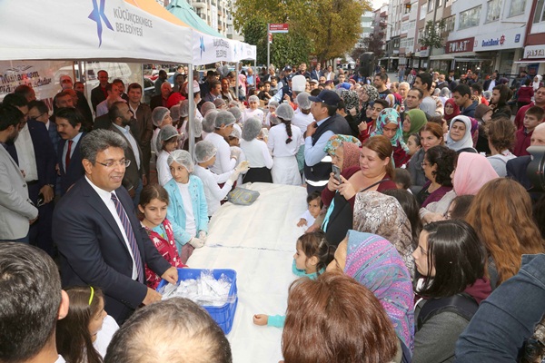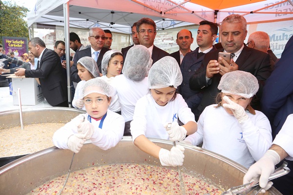 ‘’Birlikte daha güçlü, daha güzeliz’’ temasıyla, Küçükçekmece Belediyesi tarafından hazırlanan aşureler binlerce vatandaşa ikram edildi. Hürriyet Caddesi'ne kurulan stantlarda minikler aşure yapmanın püf noktalarını öğrenirken, dev kazanlarda kaynayan aşureler Küçükçekmece Belediye Başkanı Temel Karadeniz ve 72 öğrenci tarafından süslendi. Başkan Karadeniz, çocuklarla birlikte aşure kazanının başına geçerek vatandaşlara aşure ikramında bulundu. Aşureler ay- yıldız ve Küçükçekmece logosu ile süslendi.