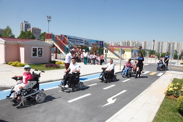 Halkalı’ da bulunan trafik eğitim parkında trafik kurallarını öğrenen engelli çocuk ve yetişkinler eğlenceli dakikalar geçirdi.