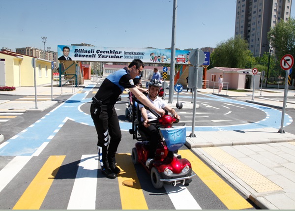 Türkiye’nin ilk engelli eğitim sınıfına sahip Trafik Parkı’nda, engelli vatandaşlar İstanbul Emniyet Müdürlüğü Toplum Destekli Polislik Şube Müdürlüğü’ne bağlı polis memurları tarafından trafik kuralları ile ilgili geniş kapsamlı bir eğitim aldı.