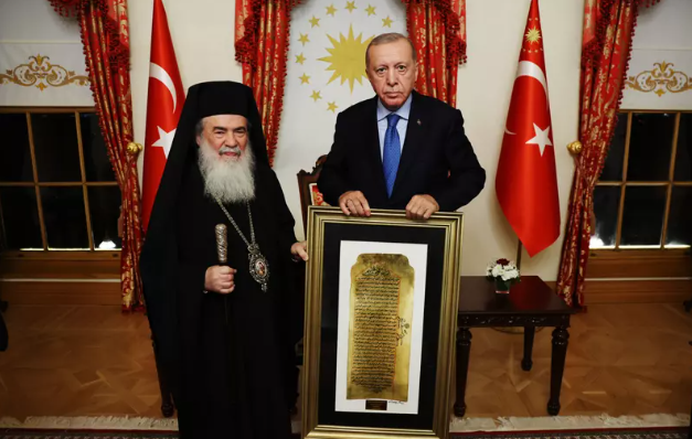 Cumhurbaşkanı Recep Tayyip Erdoğan, Kudüs Rum Ortadoks Patriği Theofilos Giannopoulos ve beraberindeki heyeti kabul etti.