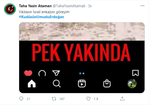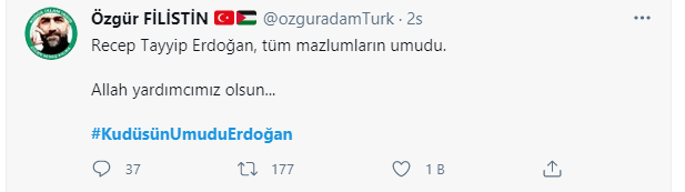 Bugün de sosyal medyada 'Kudüs'ün umudu Erdoğan' hashtagh'i ile onbinlerce paylaşım yapıldı.