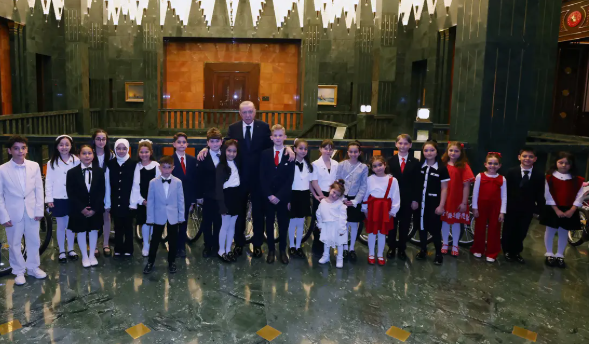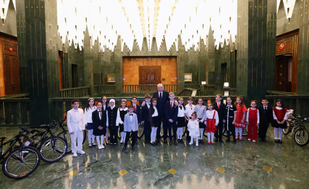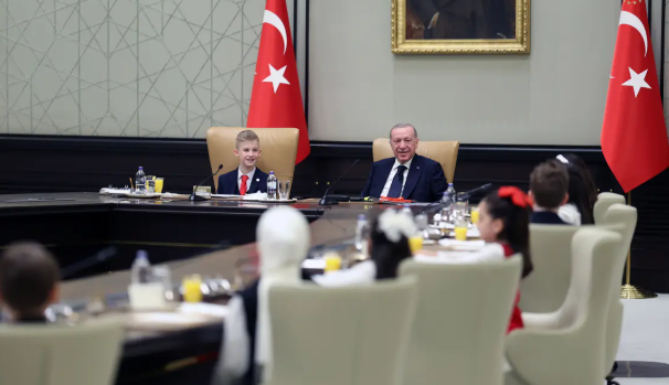 Başkan Recep Tayyip Erdoğan, 23 Nisan Ulusal Egemenlik ve Çocuk Bayramı dolayısıyla Millî Eğitim Bakanı Yusuf Tekin ve beraberindeki çocukları ile Cumhurbaşkanlığı Külliyesinde bir araya geldi.