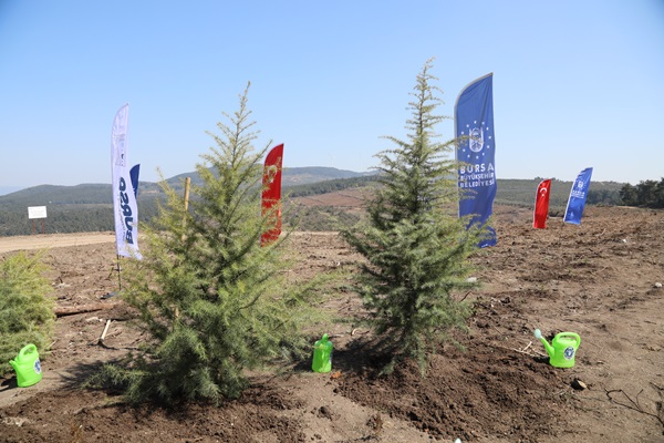 Bursa’nın 2022 Türk Dünyası Kültür Başkenti seçilmesinin ardından bu yılı farklı etkinliklerle dolu dolu geçirmeyi hedefleyen Büyükşehir Belediyesi, unvanı ölümsüzleştirecek ayrıcalıklı bir projeyi daha hayata geçiriyor. Etkinliklerin startını Nevruz Bayramı kutlamaları ile veren ve coşkuyu tüm ilçelere yayan Büyükşehir Belediyesi, şimdi de Göynüklü’de 2022 Türk Dünyası Kültür Başkenti Hatıra Ormanı oluşturuyor. Bursa Orman İşletme Müdürlüğü işbirliğiyle hayata geçirilen proje kapsamında Mudanya İşletme Şefliği sahasındaki 41.7 hektar alana yaklaşık 100 bin adet kızılçam, fıstık çamı ve servi fidanı dikilecek. İlk fidanların toprakla buluşacağı dikim törenine; Büyükşehir Belediye Başkanı Alinur Aktaş’ın yanı sıra Bursa Milletvekili Ahmet Kılıç, orman teşkilatının yönetici ve çalışanları ile çevreciler katıldı.