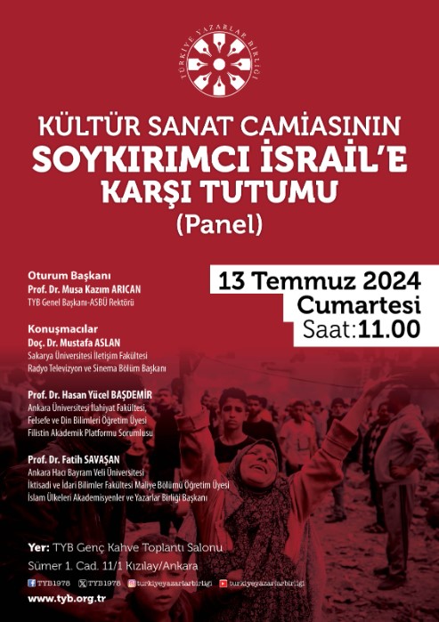 Türkiye Yazarlar Birliği, Türkiye’de ve dünya da, “Kültür Sanat Camiasının Soykırımcı İsrail’e Karşı Tutumu” konulu panel düzenleyecek.