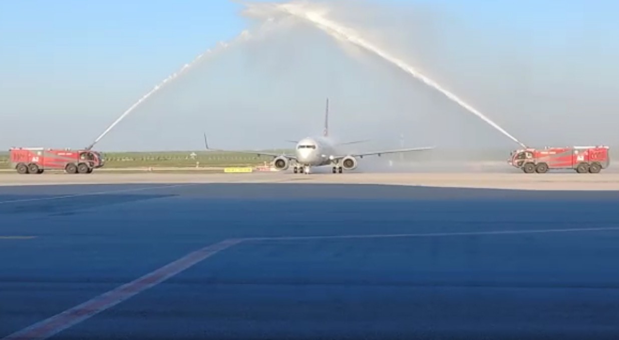 Uçak su tankıyla karşılandı