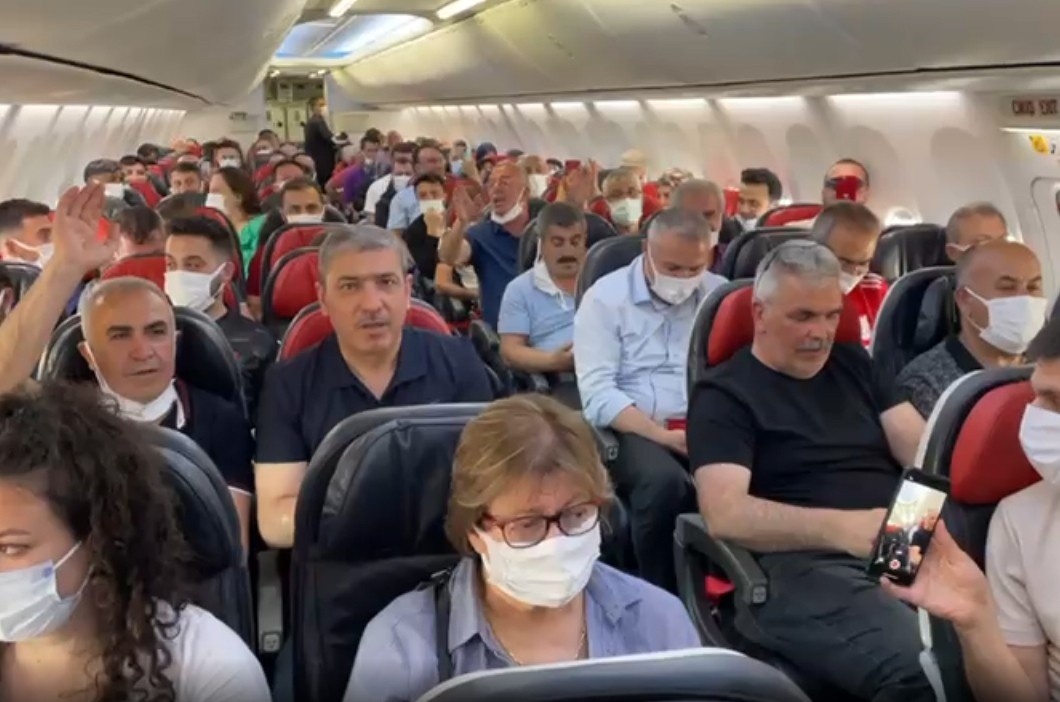 Bu kapsamda teknik direktör Rıza Çalımbay, bazı futbolcular ve taraftarlar İstanbul’dan kalkan uçakla Sivas Nuri Demirağ Havalimanı’na iniş yaptı. İniş yapan uçak su tankıyla karşılanırken Teknik Direktör Rıza Çalımbay, futbolcular ve taraftarlar uçak içerisinde alkış tuttu ve tezahürat etti.