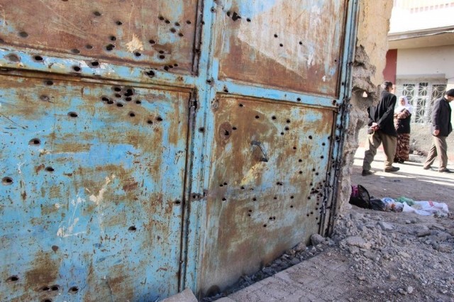 Mardin'in Nusaybin ilçesinde il genelinde 4 günlük ve 4 mahallede 13 günlük sokağa çıkma yasağından geriye birçok yerdeki kurşun izleri kaldı.