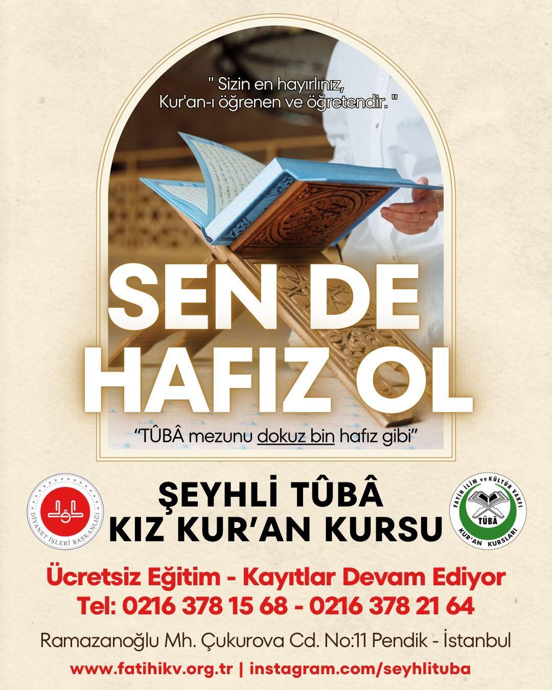 Diyanet İşleri Başkanlığının destekleriyle yapılan Fatih İlim ve Kültür Vakfı tarafından verilen Kur’an Kursu’na kayıtlar devam ediyor.