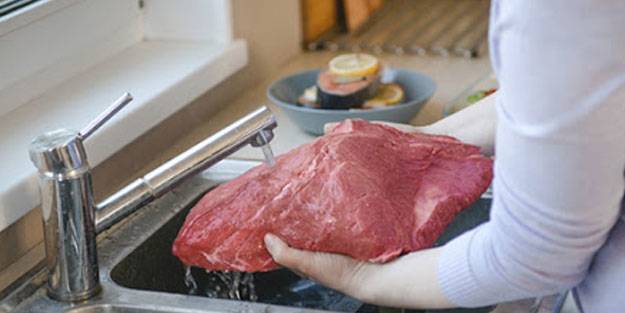 Etin yıkanarak temizlenemeyeceğini vurgulayan uzmanlar, et yıkanırsa, olası kirliliğin etin her tarafına bulaşacağını dile getiriyor. Eti işlemeye başlamadan önce etin iyice soğumasının ve katılaşmasının beklenmesi gerektiğini ifade eden Bostan da, “Kesimden sonra et koyu kırmızı renktedir. Soğurken ve havalandırılırken et, zamanla arzu edilen canlı kırmızı renge döner. Eti işlemek için doğru zaman bu zamandır. Yani kesimden yaklaşık 3-4 saat sonrasıdır. Eti işlerken kirli yüzeylere karşılaşılırsa bu kısımları yıkanmak yerine kesilmeli. Yıkama hem kirlilik içindeki bakterileri her yere yayar, hem de eti ıslattığı için bakterilerin rahat çoğalması için zemin oluşturur” dedi.