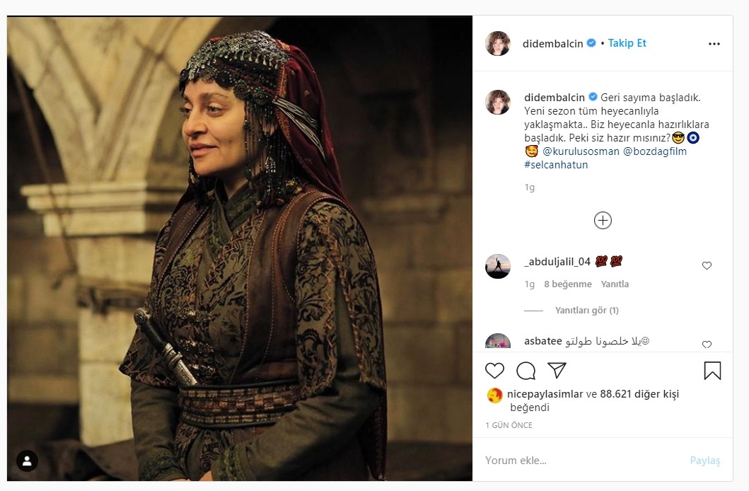Türkiye’de en çok izlenen yapımlar arasına giren Kuruluş Osman dizisinin yıldızı Didem Balçın, yaptığı paylaşımla sevenlerini heyecanlandırdı.