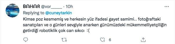Bir takipçi ise geçmişin ne kadar kıymetli olduğuna "Kimse poz kesmemiş ve herkesin yüz ifadesi gayet samimi.. fotoğraftaki sanatçıları ve o günleri sevgiyle anarken günümüzdeki mükemmelliyetçiliğin getirdiği robotiklik çok can sıkıcı" sözleriyle dikkat çekti.