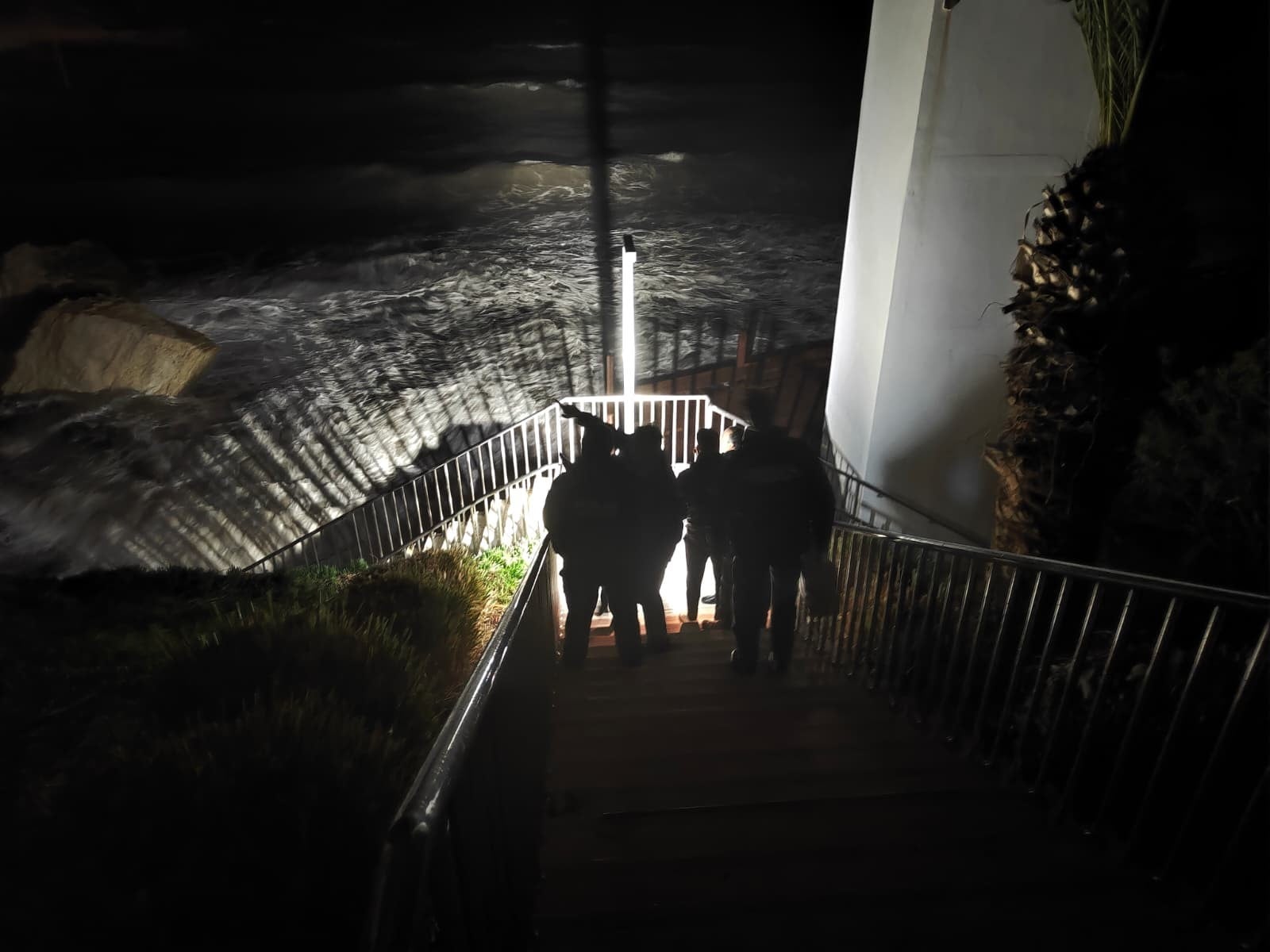 Rüzgarın etkisiyle dengesini kaybeden işçiler, iskeleden azgın dalgaların içine düştü.