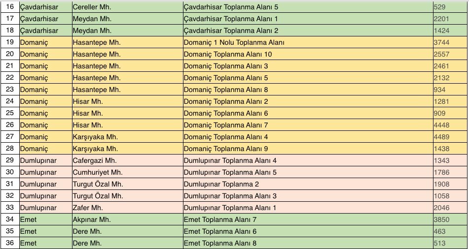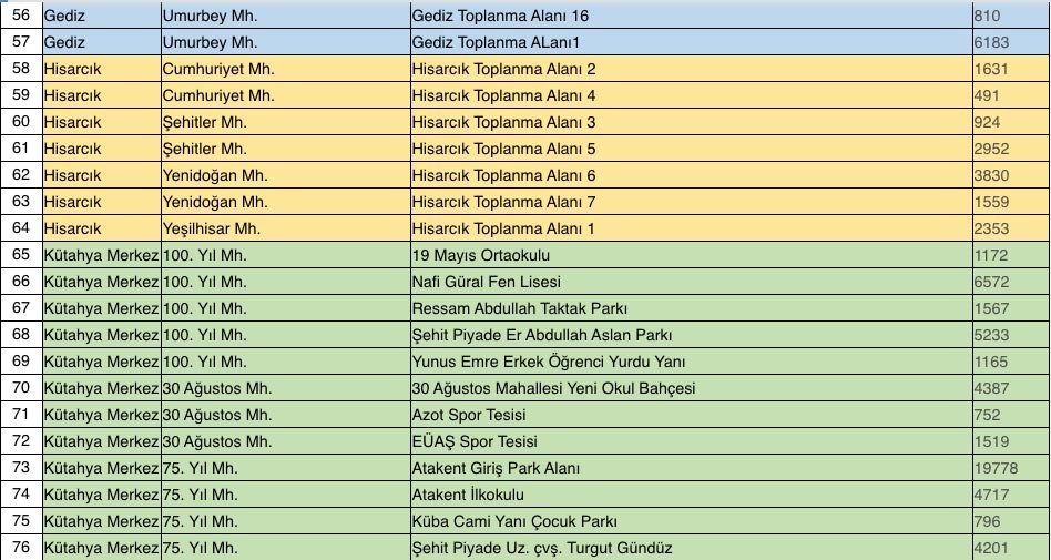 Kütahya il ve ilçeleri deprem toplanma alanları sorgulamak için tıklayın