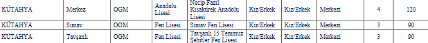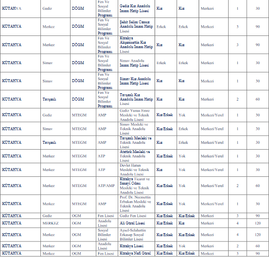 Kütahya liselerinin kontenjan kapasitesi ne kadar?