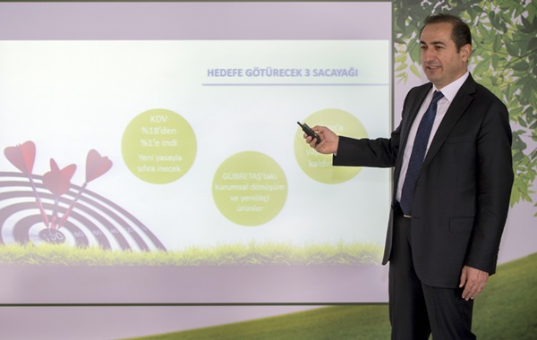Geçen yıl üretimde yüzde 32’lik artışla 697 bin tona, toplam satışta ise 1 milyon 665 bin tona ulaştıklarını anlatan Kutlu, “2016 yılı bizim için rekorlar yılı olacak. Porföyümüze yeni eklenen bitki koruma ve süs bitkisi besleme ürünleriyle birliktebu yıl 2 milyon tonu aşan satış hacmi, 4 milyar TL üzerinde konsolide ciro ve 234 milyon TL net kâr hedefliyoruz. 1 Ocak itibariyle Bakanlar Kurulu kararıyla gübrede KDV’nin yüzde 18’den yüzde 1’e inmesi veson olarak da İran’a ekonomik yaptırımların kalkması, hedefe ulaşmamızda bize destek olacak. Yeni torba yasada gübrede KDV’nin sıfırlanması da yer alıyor. Bunun gerçekleşmesi tablonun çok daha iyi olmasını sağlayacaktır” dedi.