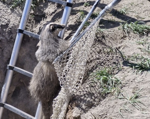 Hayvanı mahsur kaldığı 4 metrelik kuyudan çıkartmak için çalışma başlatan AFAD ekipleri merdivenle kısmen kuyuya inerek hayvan yakalama aparatıyla porsuğa müdahale etti.