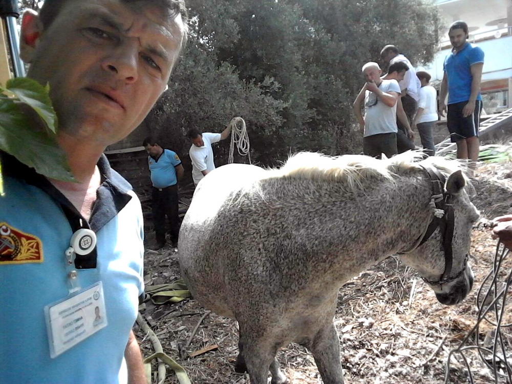 Muğla'nın Bodrum İlçesi'nde altı metresi suyla dolu 10 metrelik kuyuya düşen gebe at, itfaiye ekiplerince kurtarıldı.