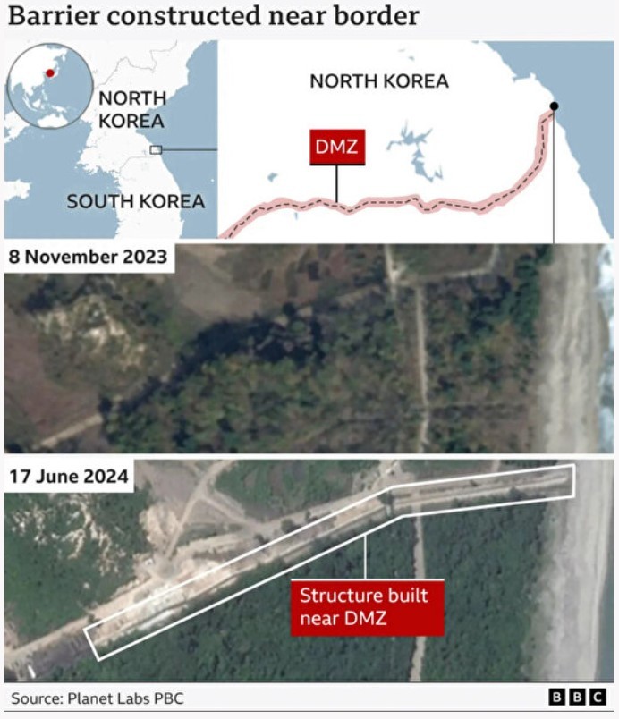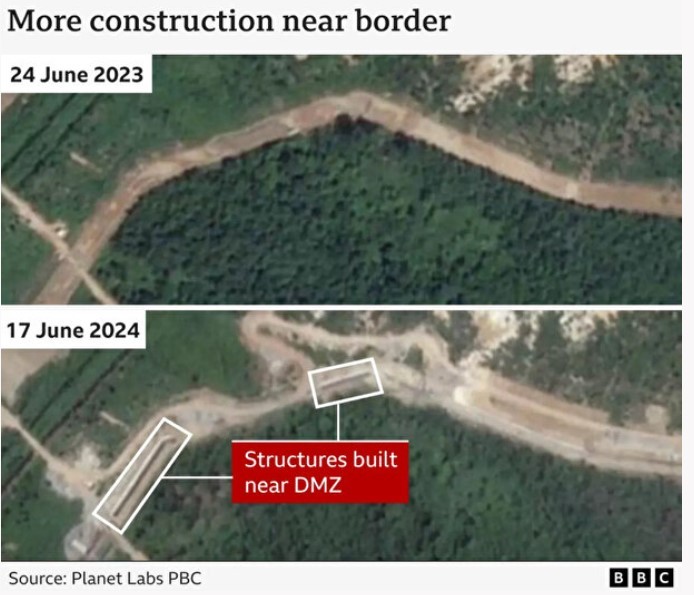Uydu görüntüleri, Kuzey Kore'nin güney sınırına yakın yerlerde duvara benzeyen yapılar inşa ettiğini ortaya çıkardı.