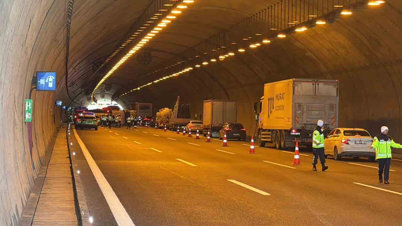 Kaza nedeniyle dört şeritli yolun üç şeridi trafiğe kapatılırken, bölgede uzun araç kuyrukları oluştu.