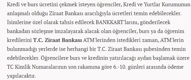 Bu öğrencilere, T.C. kimlik numaralarının son rakamına göre her ayın 6-10. günleri arasında maaşlar yatırılacaktır.