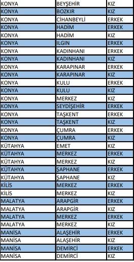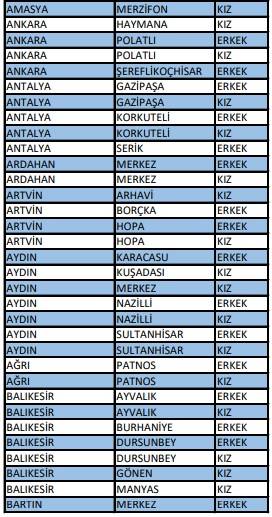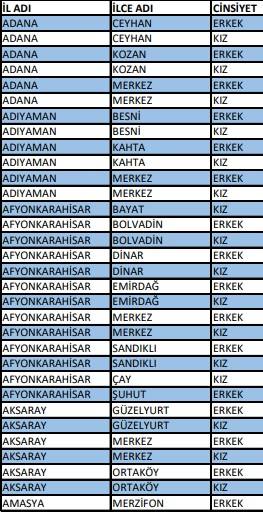 Yedeği biten il ve ilçelere ait liste şöyle;