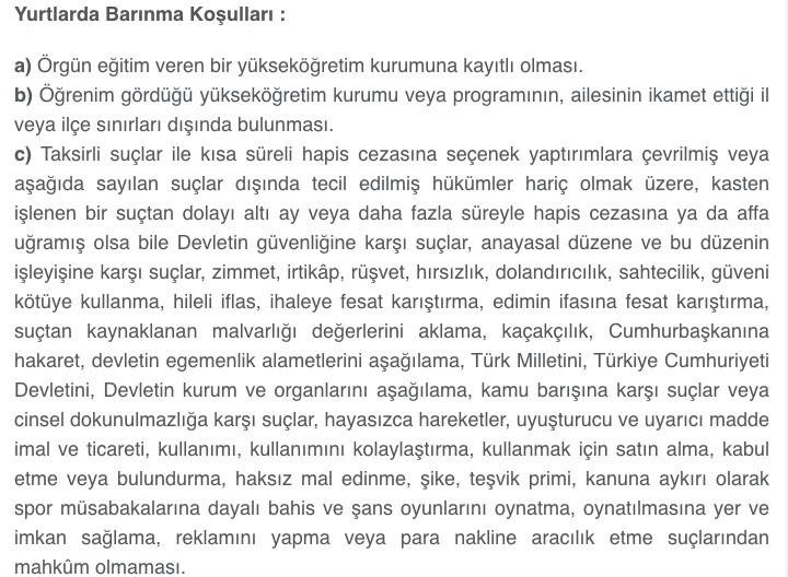 KYK yurtlarında yurt ücreti ve güvence bedeli alınmadan barındırılan öğrencilere, günlük 26,00 TL beslenme yardımı yapılmaktadır.