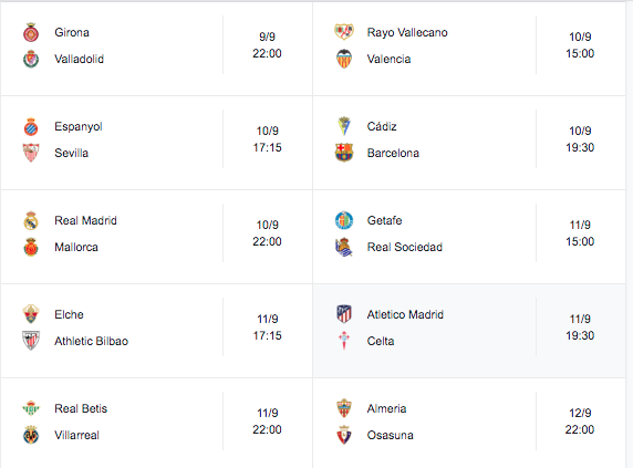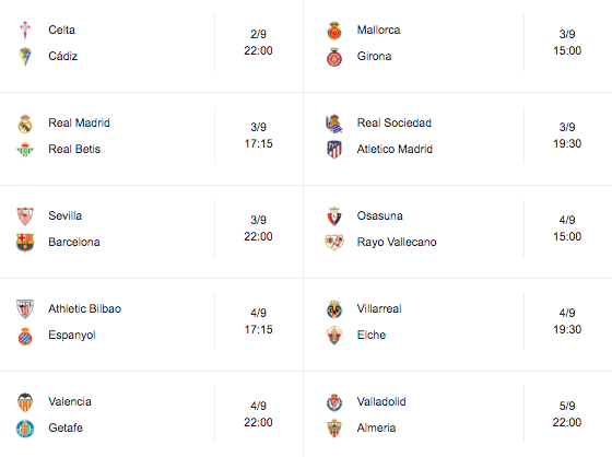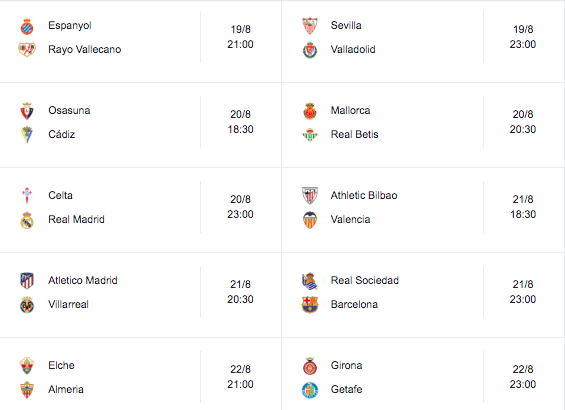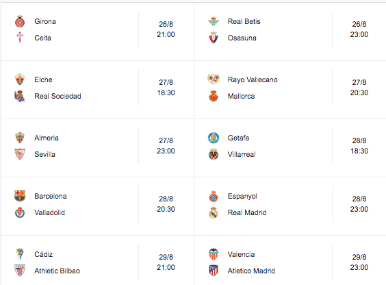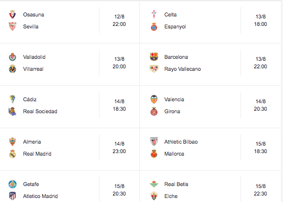La Liga 12 Ağustos tarihinde ilk karşılaşma ile başlamış olacak. 4 Haziran 2023 tarihinde ise son hafta oynanacak ve lig sona erecek. İlk hafta fikstürü şu şekilde olacak;