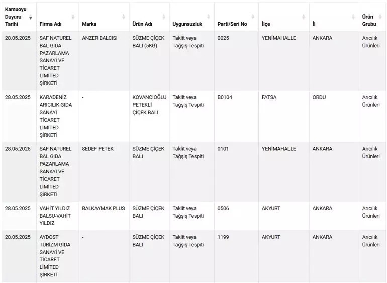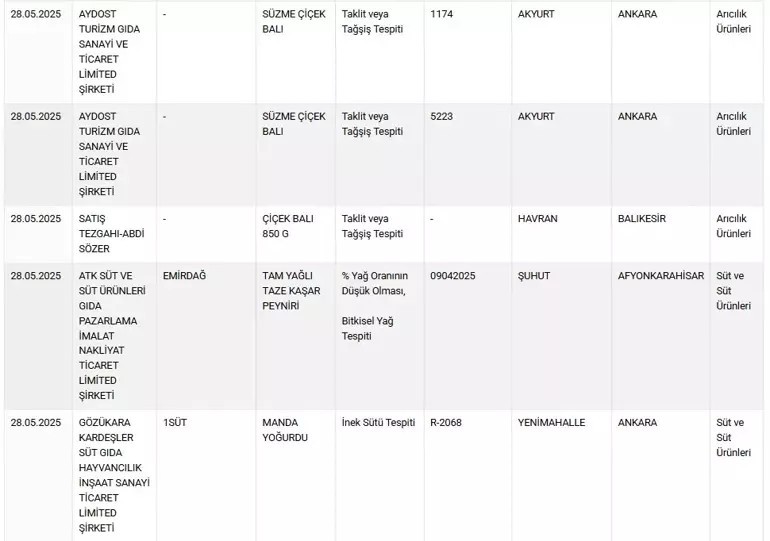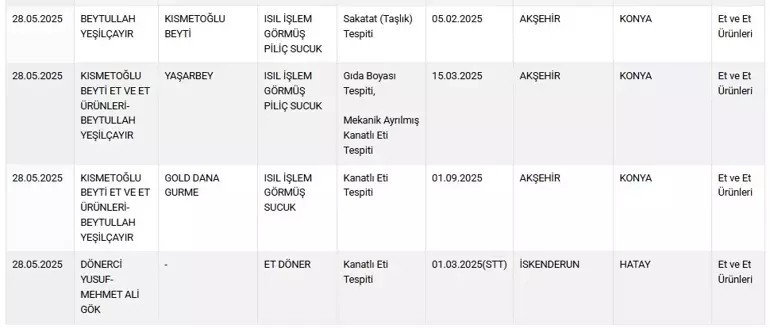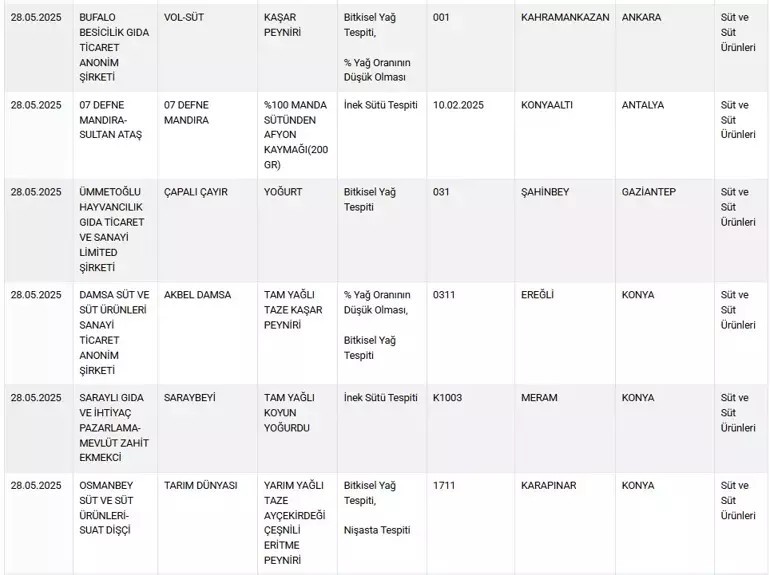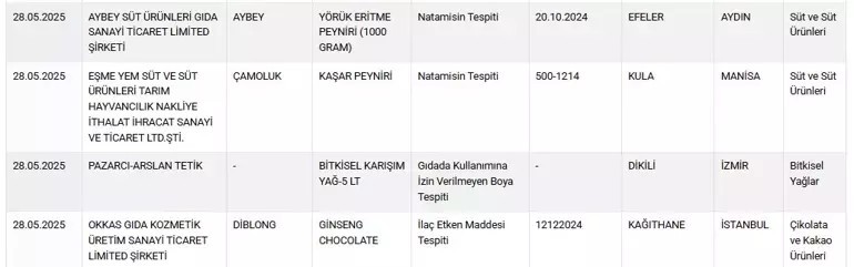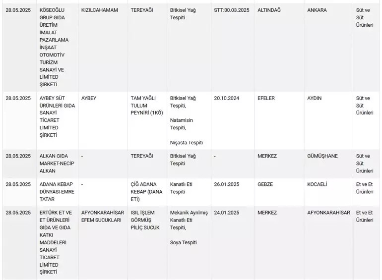 Bakanlık, güncel listeye guvenilirgida.tarimorman.gov.tr adresinden ulaşılabileceğini belirtti. Vatandaşlara, alışveriş yapmadan önce bu listeyi kontrol etmeleri çağrısında bulunuldu.