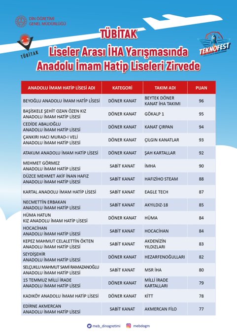 Eski Türkiye vesayetçilerinin her fırsatta karalamaya çalıştığı İmam Hatip Liseleri başarıdan başarıya koşmaya devam ediyor. TÜBİAT tarafından düzenlenen İHA yarışmasında imam hatip liseleri zirvede yer aldı.